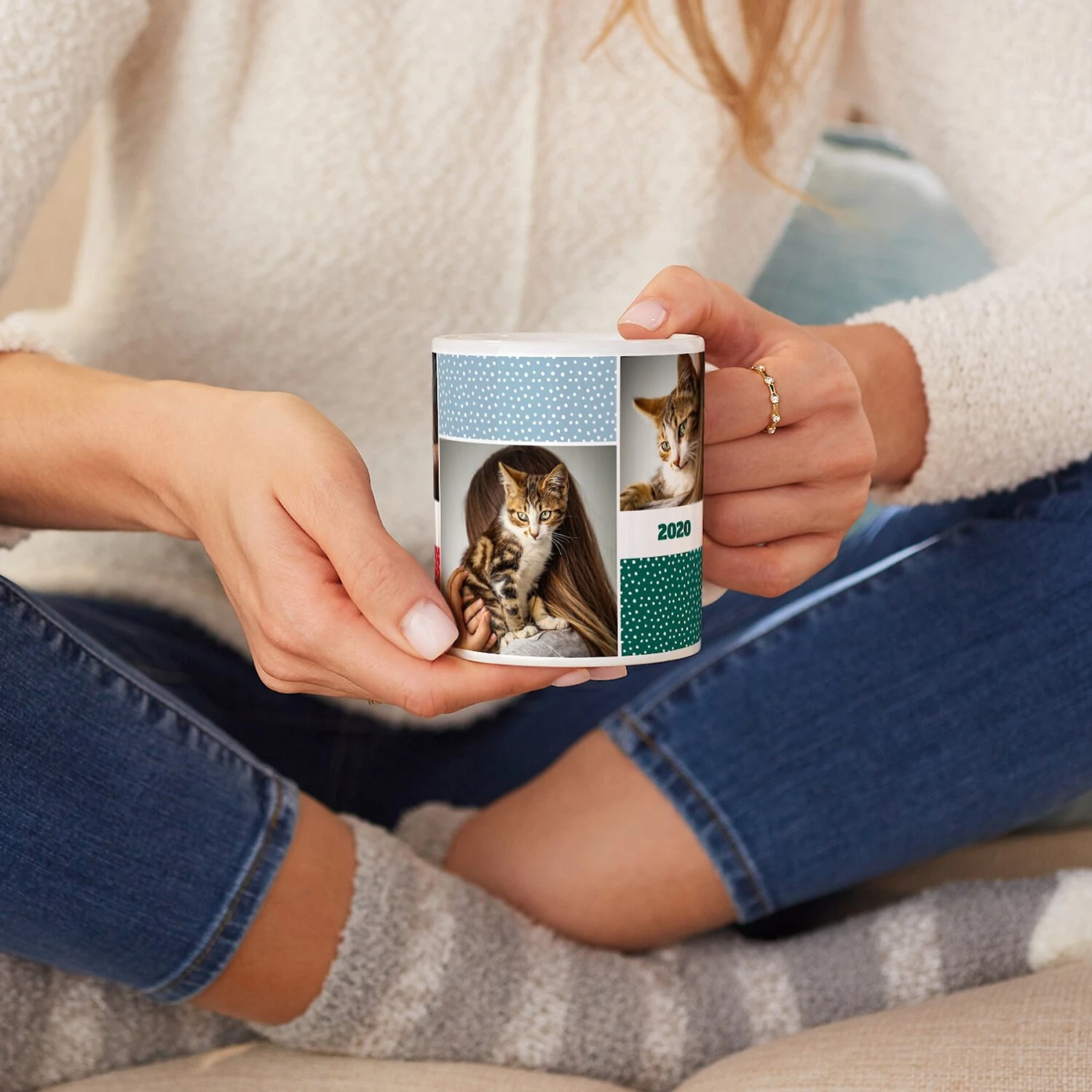 - Ceramic mug is customizable with your pet’s photos and personalized text.