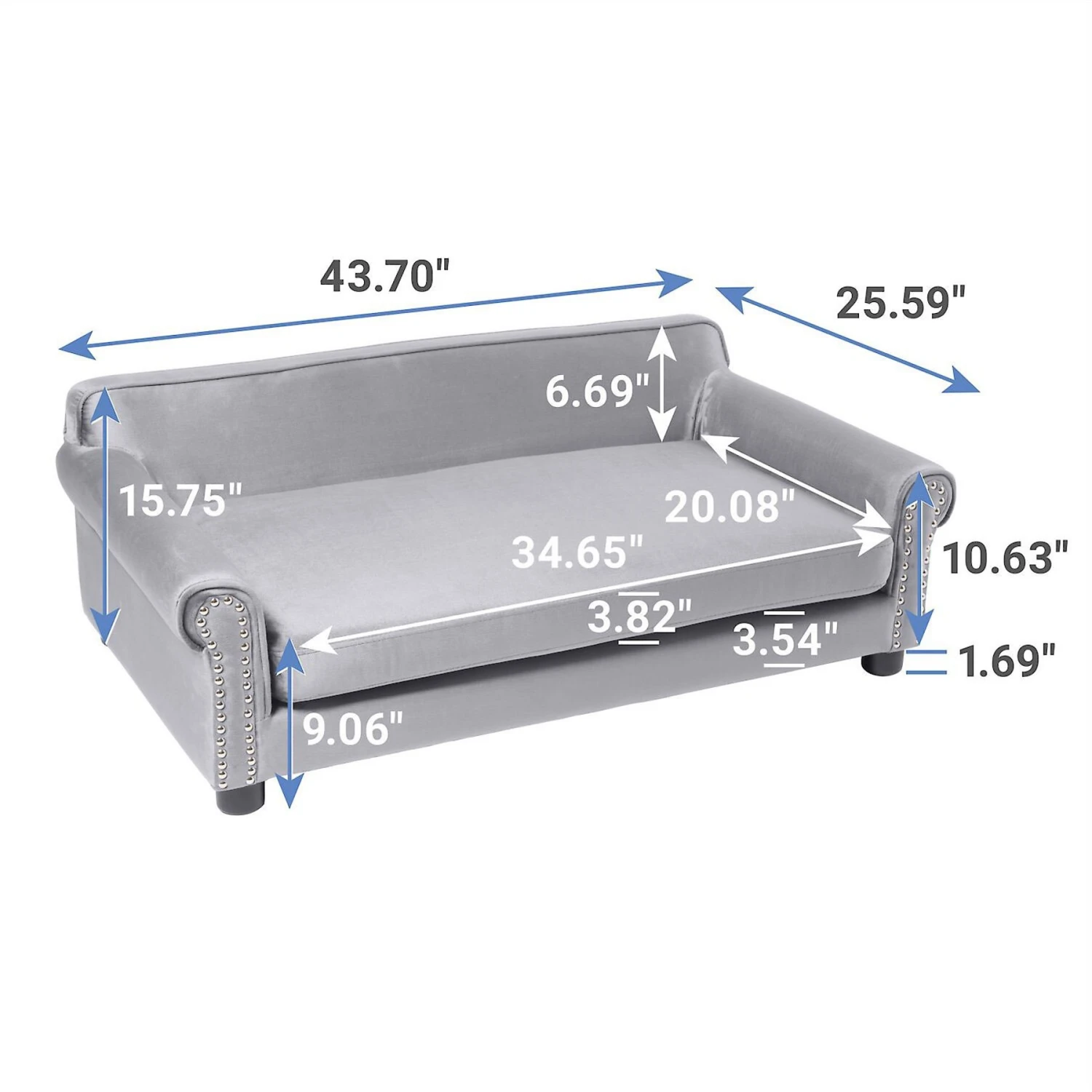 This Frisco Sofa Bed with Removable Cover, Gray + Eyelash Cat & Dog Blanket, Silver bundle is the paw-fect duo to help your pet rest and recharge! The Frisco Sofa Pet Bed is designed with padded, rolled arms, soft back support and decorative rivet accents is covered in velvety brushed polyester that your pet will look forward to lounging on, just like your real couch. With its supportive foam cushion and padding all over the sleep surface, this sofa bed provides a place for unmatched relaxation and restful, restorative sleeps, nap after nap. Plus, the cushion cover is removable to help you keep their favorite sleep spot comfy, clean and inviting. Your pet will love snuggling up on the included blanket, which is made with faux fur on one side and velvet on the other. It’s great for adding a little extra warmth and softness when she’s lounging on the Frisco Sofa Bed!